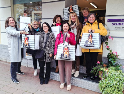 Boutique Schach Matt gratuliert der Gewinnerin aus Neckenmarkt mit ihren beiden Begleiterinnen zum Hauptpreis